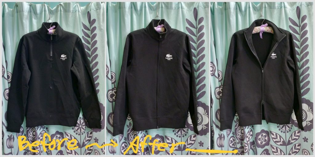 ラコステのハーフジップのプルオーバーをフルジップにリメイクしました。